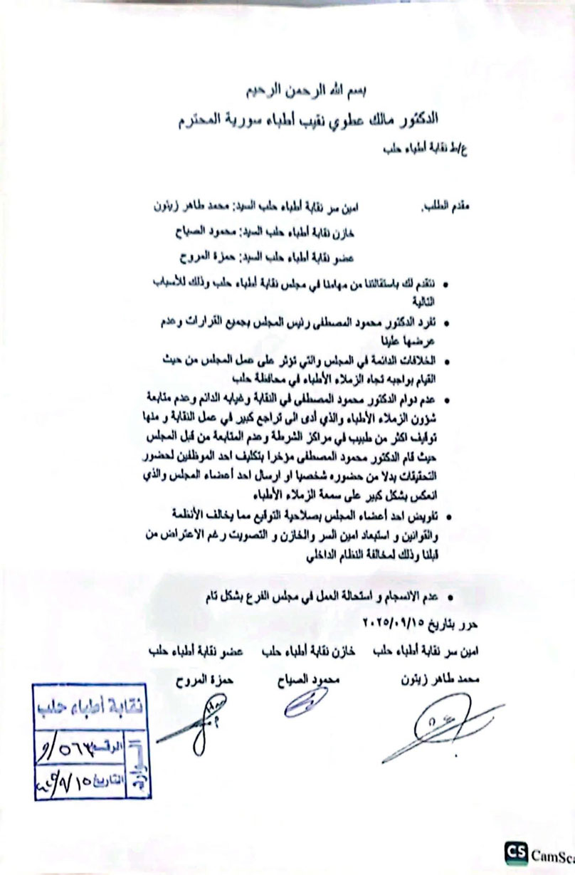 استقالات في نقابة أطباء حلب على خلفية شكاوى احتكار العمل وغياب الشفافية